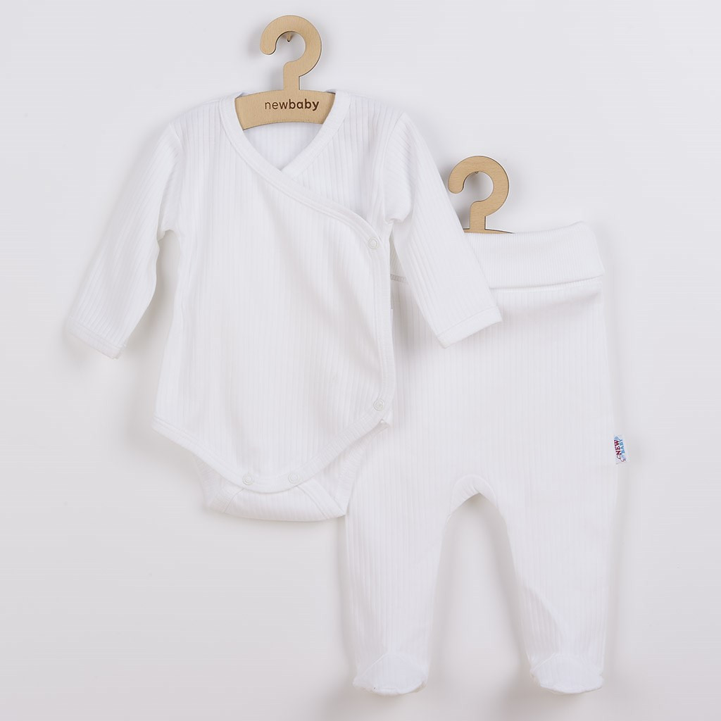 Stílusos baba 2-részes együttes New Baby Practical. Az együttes lábfejes nadrágot és bodyt tartalmaz. A csíkos body teljes hosszában és az ülepénél patentos, ami megkönnyíti a baba öltöztetését és pelenkázását. A lábfejes nadrág széles rugalmas derékpánttal rendelkezik, amely nem nyomja a baba hasát. Nagyon kellemes és puha anyagból készült, amelyben a baba nagyon kényelmesen fogja érezni magát. Anyaga: body: 100% pamut.