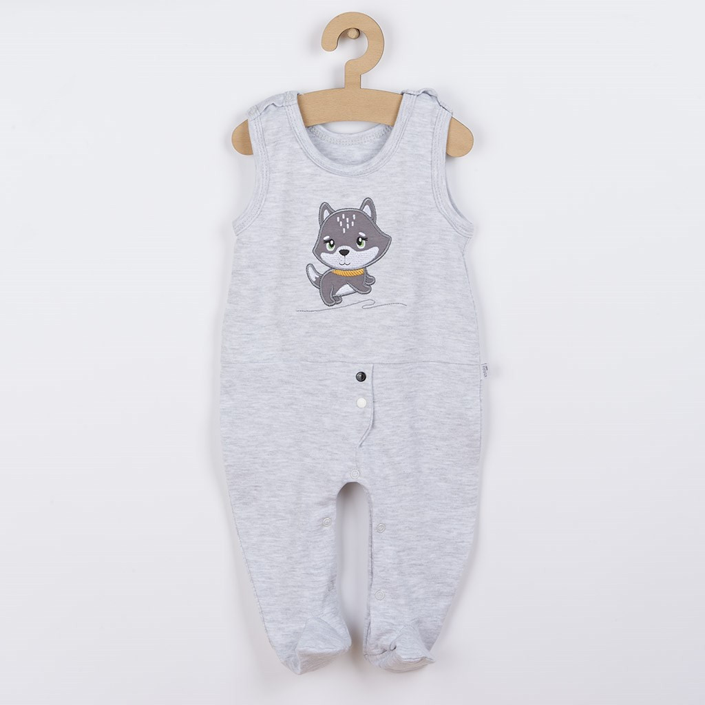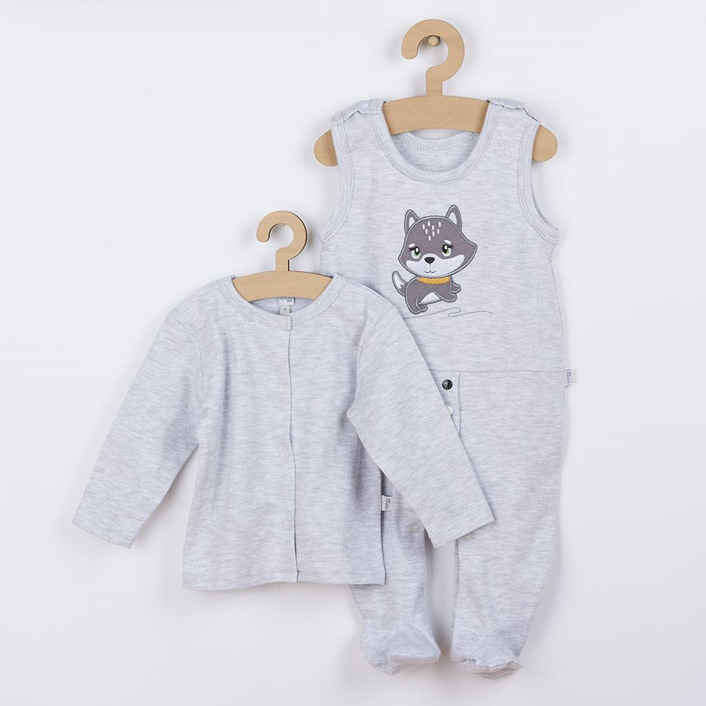 Baba 2-részes együttes Koala Doggy. Az együttes kabátkát és rugdalózót tartalmaz. A rugdalózó aranyos kiskutya képpel díszítve. Vállnál és az ülepénél patentos,. A kabátka teljes hosszában patentos. Nagyon kellemes és puha anyagból készült. Kislányok és kisfiúk számára is alkalmas. Anyaga: 100% pamut.
