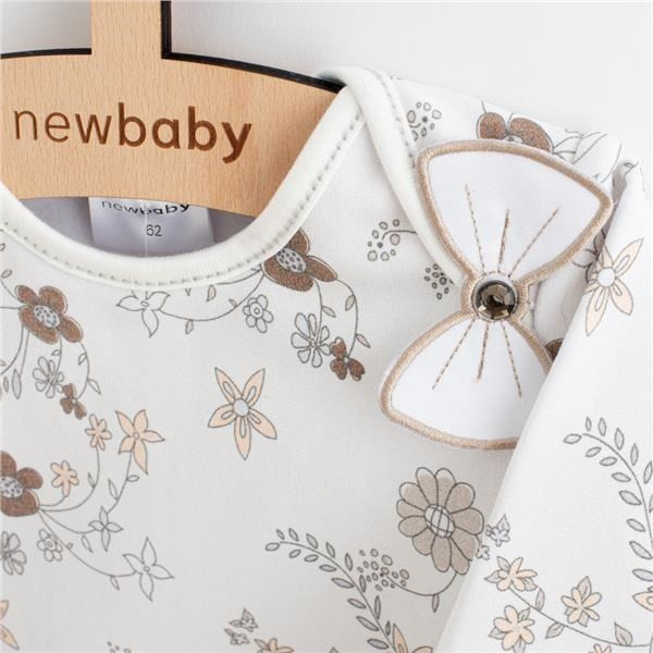 Aranyos baba kétrészes szett New Baby Kate kisbabáknak. A szett nagyon finom, puha és jó minőségű, kisbabák számára megfelelő anyagból készült. Pólót és melegítő nadrágot tartalmaz. A póló virágos motívummal van díszíti. A csíkos mintás melegítő nadrág szegélye szélesebb, a szárán szűkített. A precíz és minőségi varrással készült szettben a baba nagyon jól fogja magát érezni. Anyaga: 95% pamut, 5% elasztán.