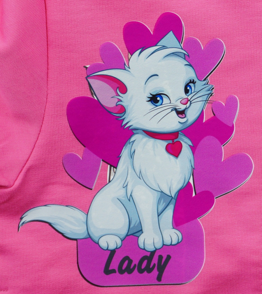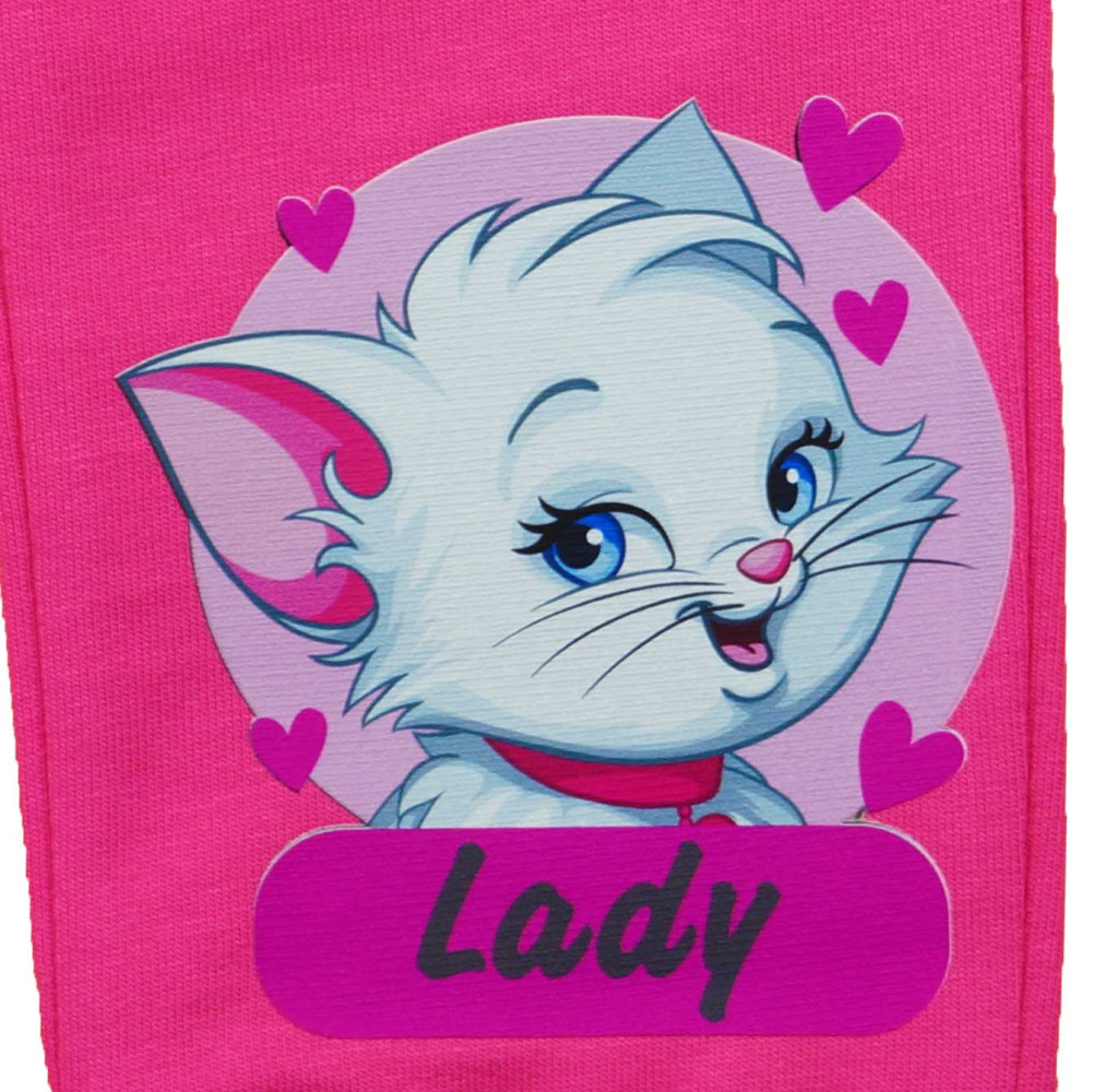Ez az aranyos cica mintával díszített, 2 részes szabadidő szett garantáltan elnyeri a kislányok tetszését. A szett igazán lányos színvilágú, 100% pamut anyagból készült, így puha tapintású, bőrbarát és egész napos kényelmet biztosít viselése során.