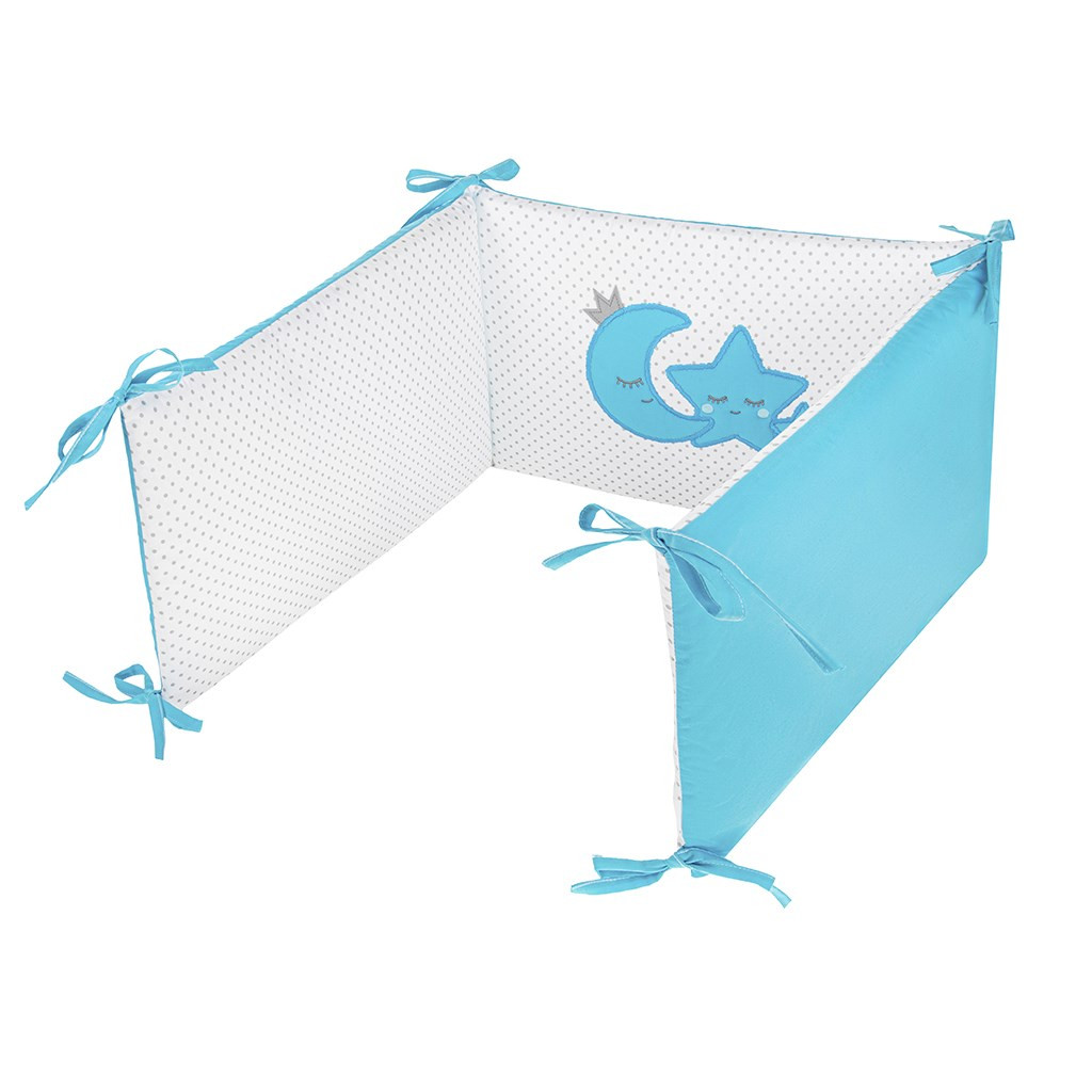 6- részes ágyneműgarnitúra Belisima Magic Stars babák számára. Tartalmaz: párnahuzatot, paplanhuzatot, rácsvédőt, párnát, baldachint és paplant. Párnahuzat 40x60 cm, takaró huzat 100x135 cm, rácsvédő 180 cm. Puha minőségi anyagból készült. Összetétel: 100% pamut. Ezek a termékek biztonságosak, mivel: a természetes pamut nem okoz bőrirritációt, mivel nem tartalmaz formaldehidet és egyéb, csecsemőkre káros anyagokat. Nem veszítenek színeik élénkségéből és nem színezi el a többi ruhát. Kellemes mintázatúak és színei nyugtató hatásúak. Az ágyneműhuzaton használt cipzár "biztonságos cipzár" lengővégek nélkül, amit a gyermek nem vehet le és nem nyelhet le! Nem tartalmaznak gombokat, sem műanyag illetve acél darabkákat, melyek veszélyesek lennének gyermeke számára. A párna és a paplan töltete antialergén anyagból készült ami azt jelenti, hogy nem terjeszt mikroorganizmusokat és penészt.
