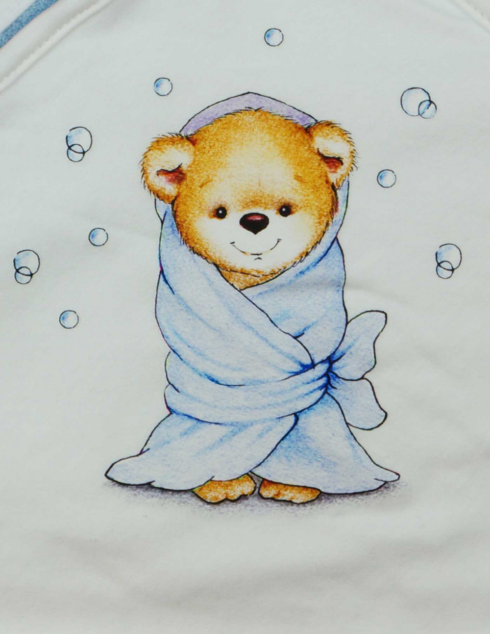 Kényeztesse csöppségét ezzel a világoskék színű, baba kapucnis törölközővel, amelyen cuki macis minta díszeleg! A 100x100 cm-es méretű törölköző tökéletes választás a fürdés utáni bugyoláláshoz, és garantáltan melegben tartja a család legkisebb tagját. Az anyag 100% pamut, így puha érintése és kiváló nedvszívó képessége élménnyé varázsolja a fürdés utáni pillanatokat. Minőségi magyar termék, melyet kisbabája bőre is imádni fog!