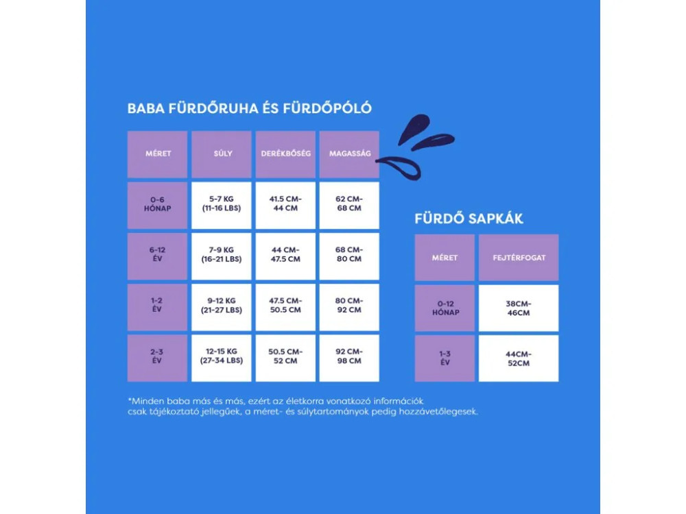 • Úszópelenka: belső anyag: 80% pamut, 20% poliészter, poliuretánnal laminált. Külső anyag: 100% poliészter