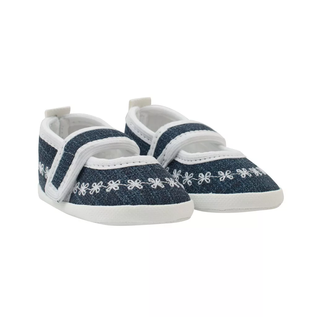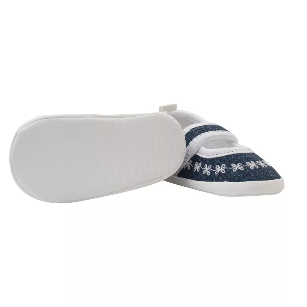 Baba aranyos és kényelmes cipő New Baby kislányok számára. Divatos tépőzáras puhatalpú cipő. A cipő kényelmes, könnyű és a láb természetes mozgásához igazodó. Rugalmas talppal rendelkezik, így leginkább hasonlít a mezítlábas járáshoz, viszont pont annyira vastag, hogy védje a baba talpacskáját a hideg padlótól. Anyaga: 80% pamut, 20% poliészter. Talp: szintetikus anyag. A talpbetét hossza 12,5 cm. 12-18 hónapos gyermekek számára készült. Praktikus ECO dobozban csomagolva. Megjegyzés: a textilbetét alatt van egy papírbetét, amely megtartja a kiscipő alakját. Az első használat előtt távolítsa el ezt a papírbetétet.