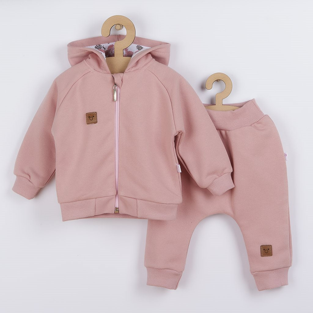 2 részes baba együttes Koala Flowers. Az együttes melegítő nadrágot és kapucnis pulóvert tartalmaz. A kapucni pamut béléssel rendelkezik. A pulóver teljes hosszában cipzárral van elllátva, elasztikus szegéllyel rendelkezik a derékban és az ujjakon. A melegítő nadrág széles szegéllyel és ejtett üleppel rendelkezik. Az együttes nagyon kellemes, puha anyagból készült, nagyon jó minőségű és precízen varrt. Anyaga: 85% pamut, 15% poliészter.