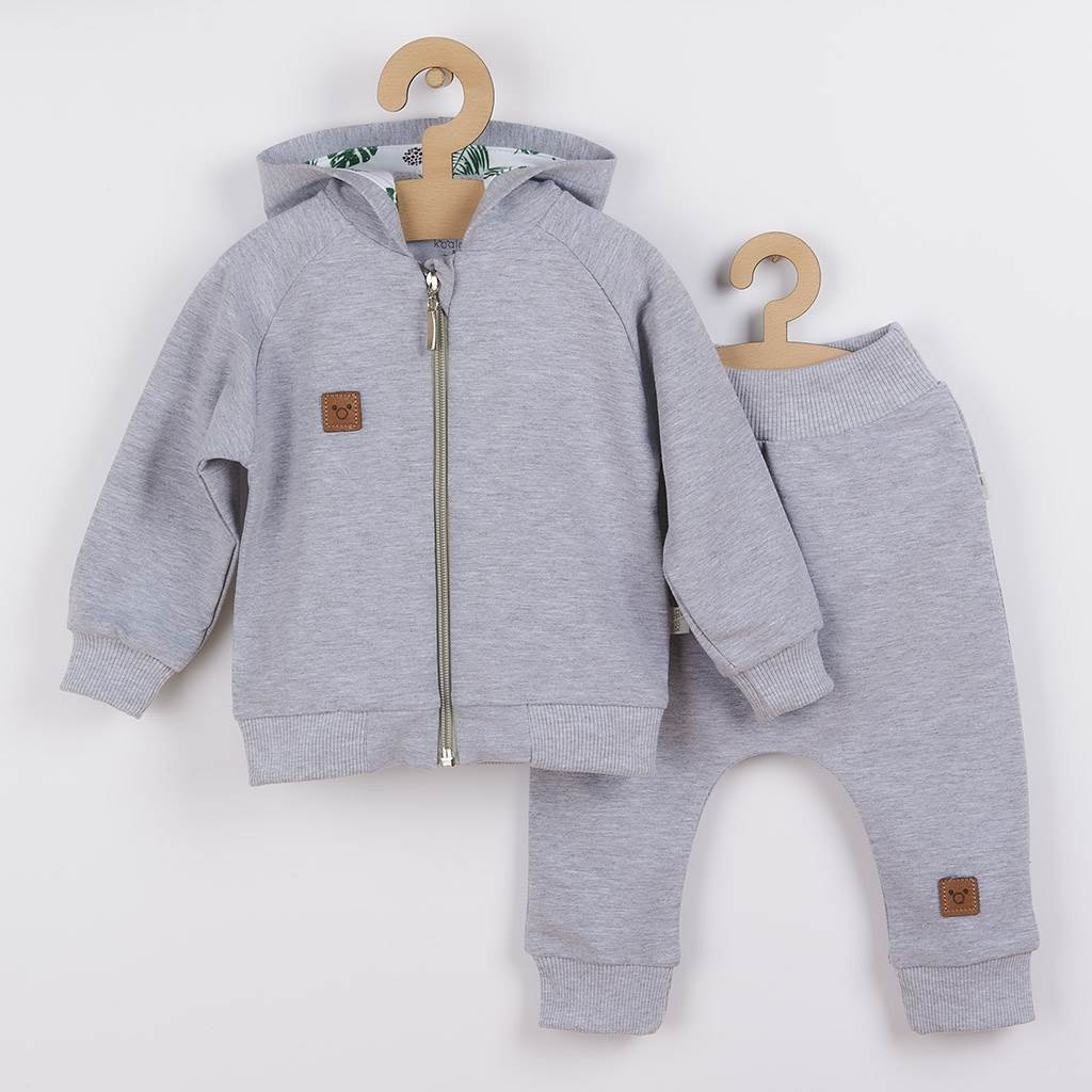 2 részes baba együttes Koala Nature. Az együttes melegítő nadrágot és kapucnis pulóvert tartalmaz. A kapucni pamut béléssel rendelkezik. A pulóver teljes hosszában cipzárral van elllátva, elasztikus szegéllyel rendelkezik a derékban és az ujjakon. A melegítő nadrág széles szegéllyel és ejtett üleppel rendelkezik. Az együttes nagyon kellemes, puha anyagból készült, nagyon jó minőségű és precízen varrt. Anyaga: 85% pamut, 15% poliészter.