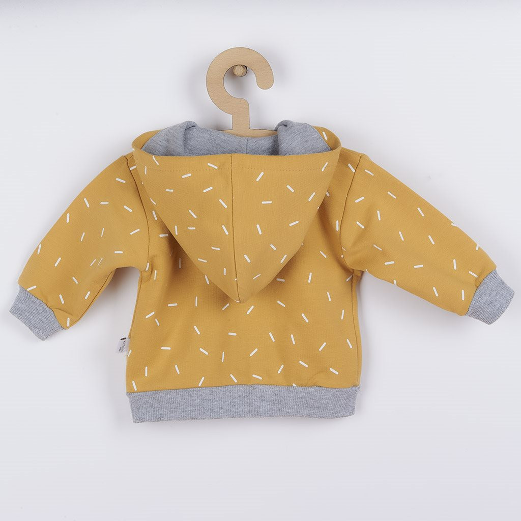 Eredeti és stílusos baba 2-részes együttes Koala Wild Bear. Az együttes melegítő nadrágot és pulóvert tartalmaz. A pulóver kapucnival teljes hosszában cipzáros, ami megkönnyíti a baba öltöztetését. A melegítő nadrág széles szegéllyel és széles rugalmas derékpánttal rendelkezik, amely nem fogja nyomni a baba hasát. Nagyon kellemes és puha anyagból készült, amelyben a baba nagyon kényelmesen fogja érezni magát. A divatos dizájnak köszönhetően a baba az együttesben nagyon aranyos lesz. Anyaga: 96% pamut, 4% elasztán.