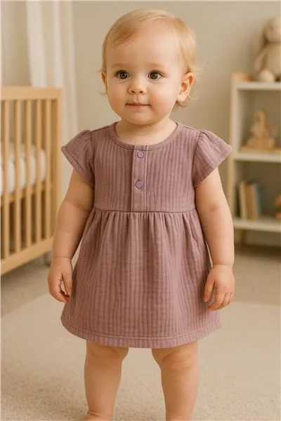 Baba muszlin ruha New Baby minden kislány számára. Harangruha rövid ujjal. Nagyon kellemes és puha anyagból készült. A New Baby számára nagyon fontos a vásárló elégedettsége, ezért kínáljuk Önnek a ruhát.