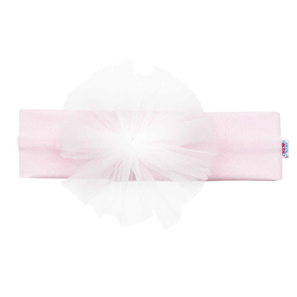 Divatos baba fejpánt New Baby Little Princess, kisbabák számára. A fejpánt tüll virággal díszítve. A fejpánt rugalmas, alkalmazkodó, nagyon kényelmes és jól tart a baba fején. Anyaga: 100% pamut, 100% poliesztér.