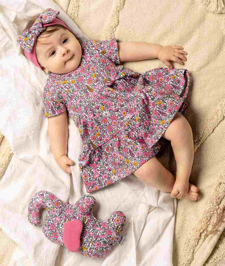 Stílusos és praktikus Nicol Lea rövid ujj baba ruhácska-body. Az A-vonalú, ruhácska akár otthoni viseletként, akár séta közben is megfelelő. A ruhák body stílusban készültek, és egy kislányka ruhatárának létfontosságú darabja. A derekán csinosan pliszírozott. Az öltöztetést és a pelenkacserét megkönnyítik a vállon és a lábak között praktikusan összekapcsolható patentek. Anyaga: 100% pamut.