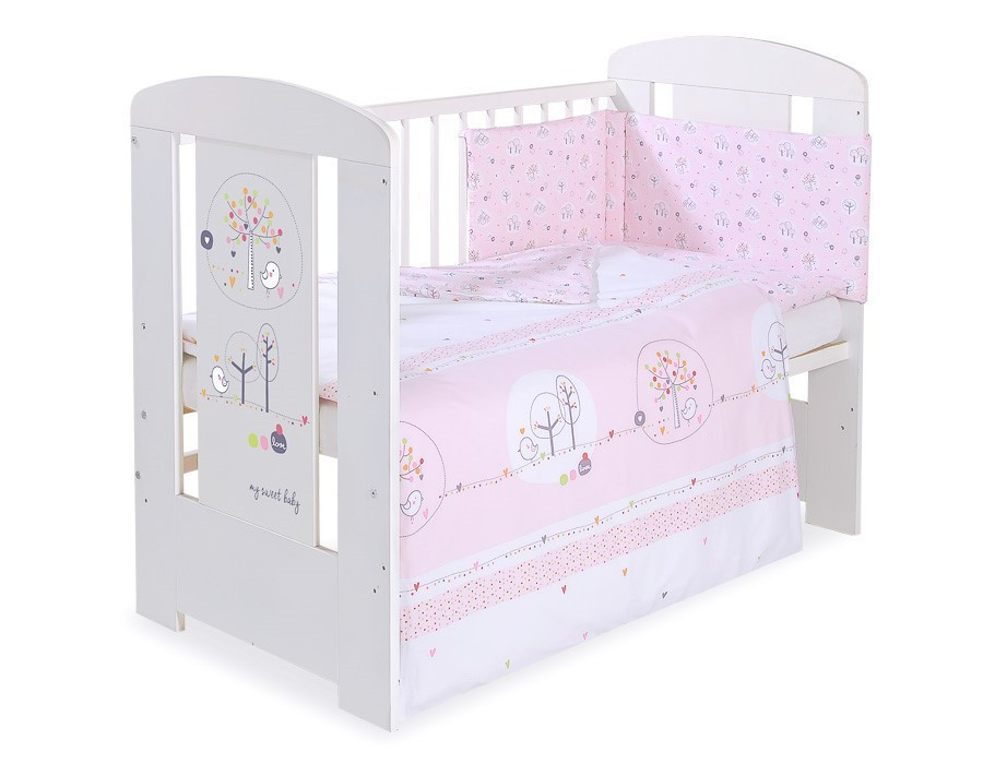 BabyLion Prémium 3 részes ágyneműhuzat szett - Kedves madarak - Rózsaszín