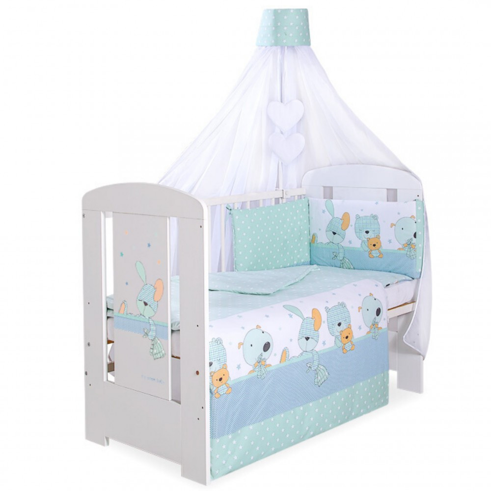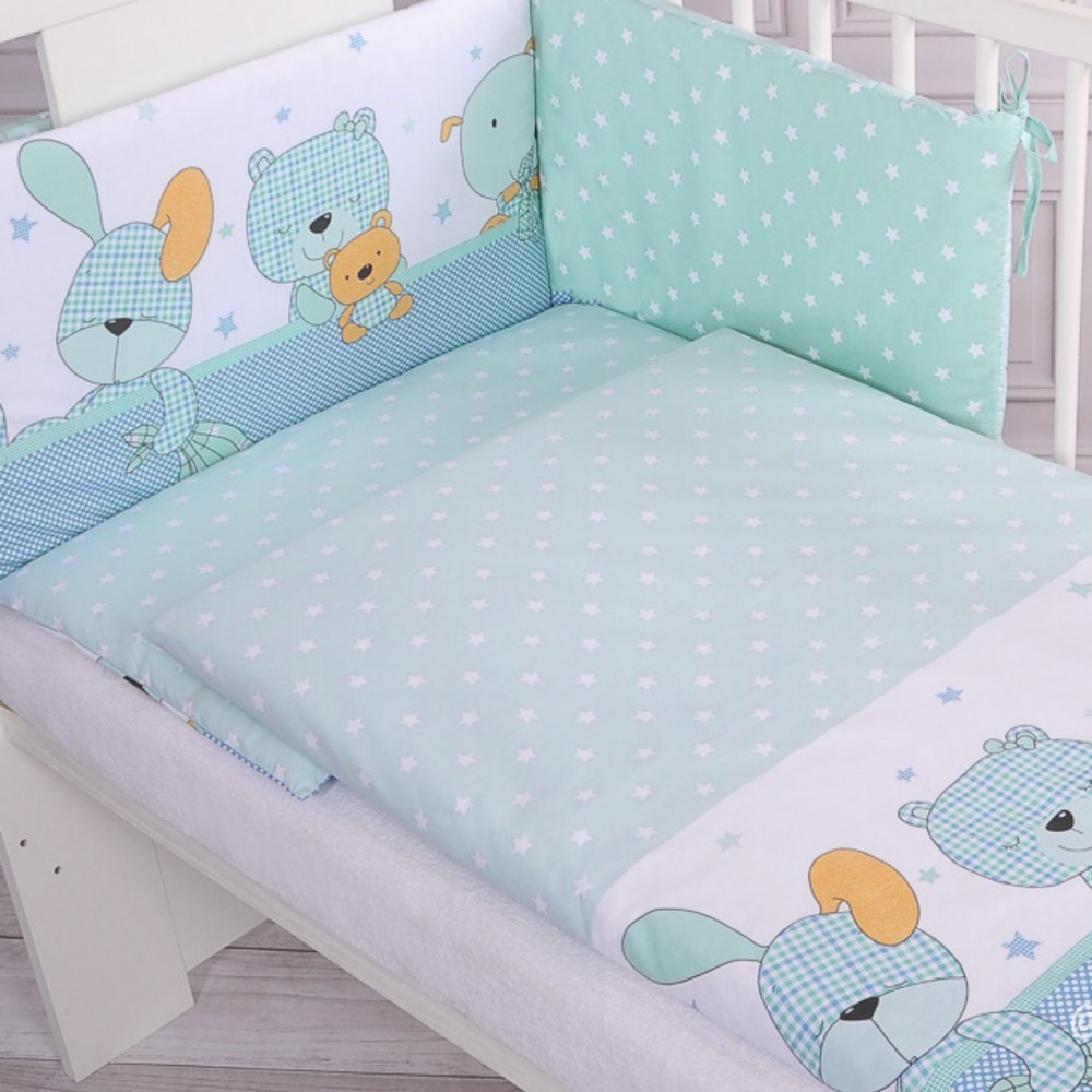 3. Univerzális rácsvédő 32x155m. Külső anyag 100% pamut, párnázat 100% poliészter. Tökéletes illeszkedés mindkét kiságy méretéhez: 60x120cm és 70x140cm.