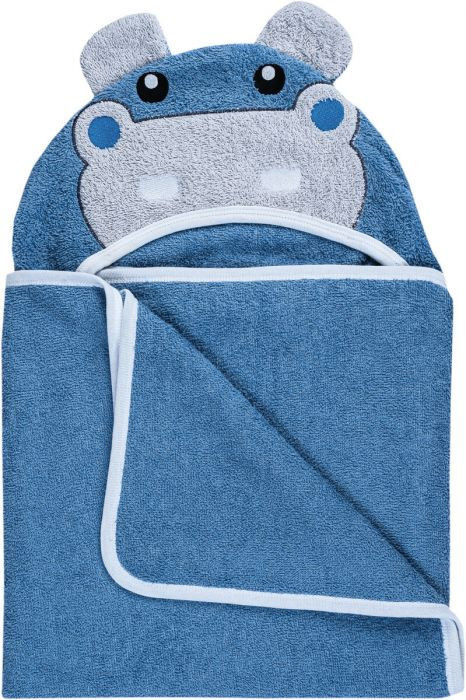 Bubaba kapucnis törölköző fülekkel 110x75 cm - Kék víziló
