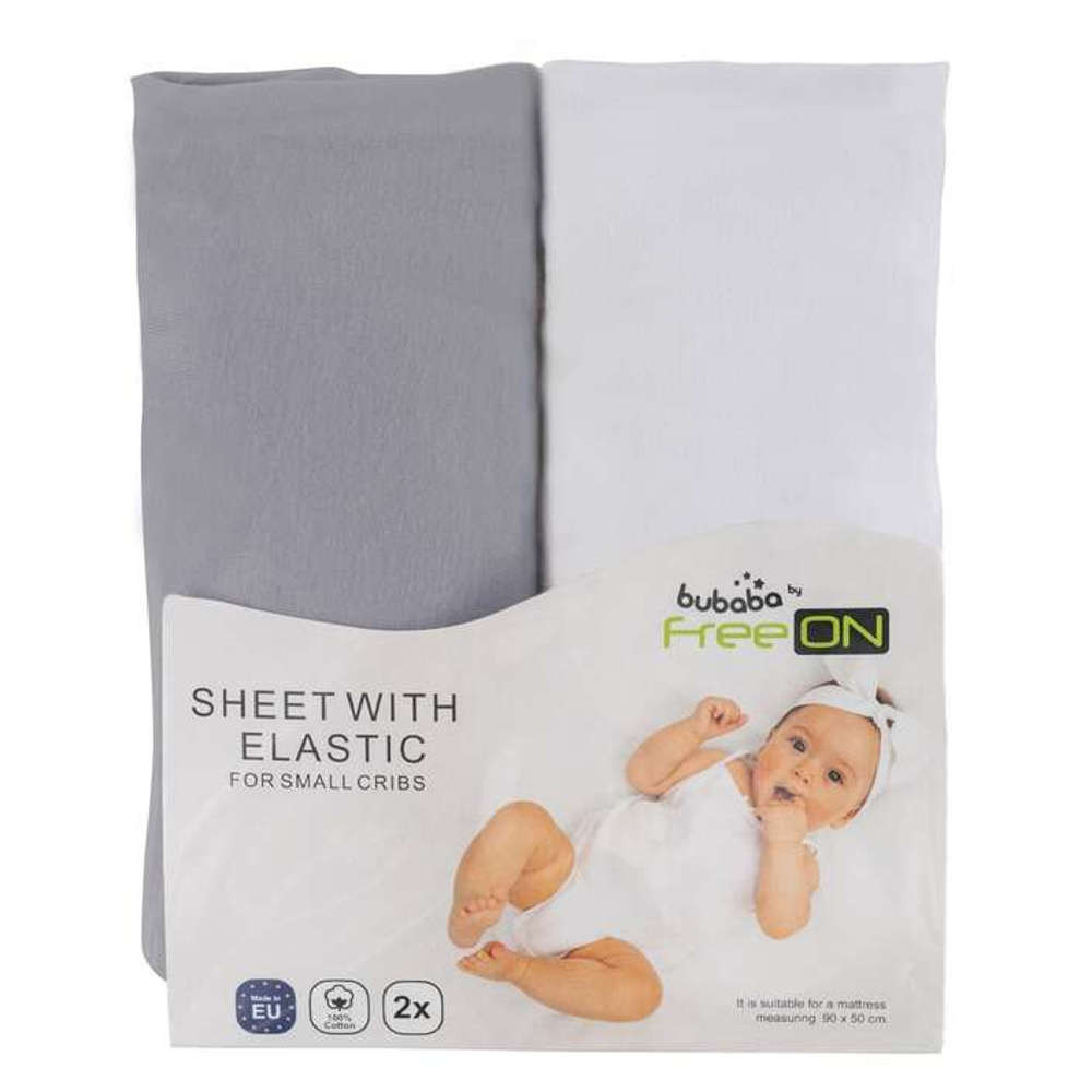 Bubaba pamut gumis lepedő 90x50cm-fehér/szürke