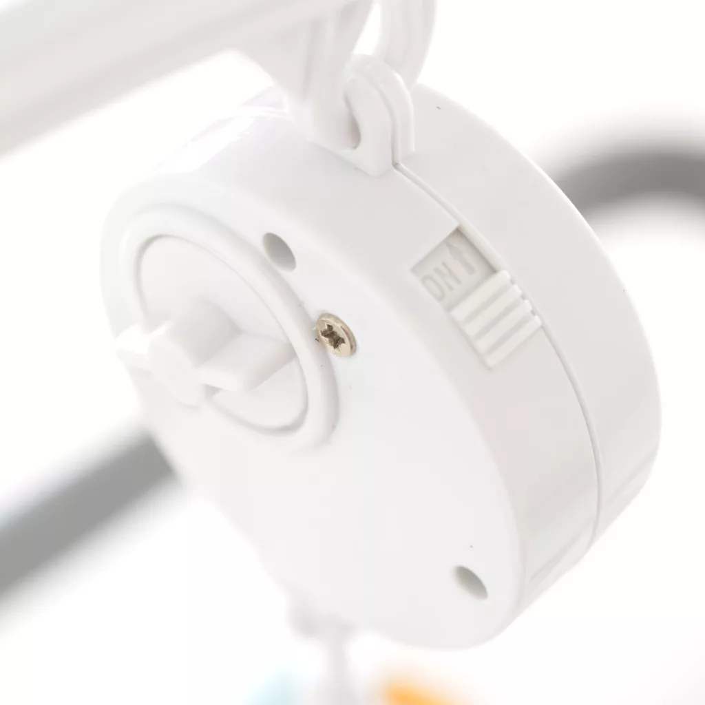 A kiságyra szerelhető zenélő forgót újszülött kortól tervezték, egyaránt fejleszti a gyermek látását és hallását, a nyugtató zene és a mozgó figurák pedig segítenek az elalvásban.
