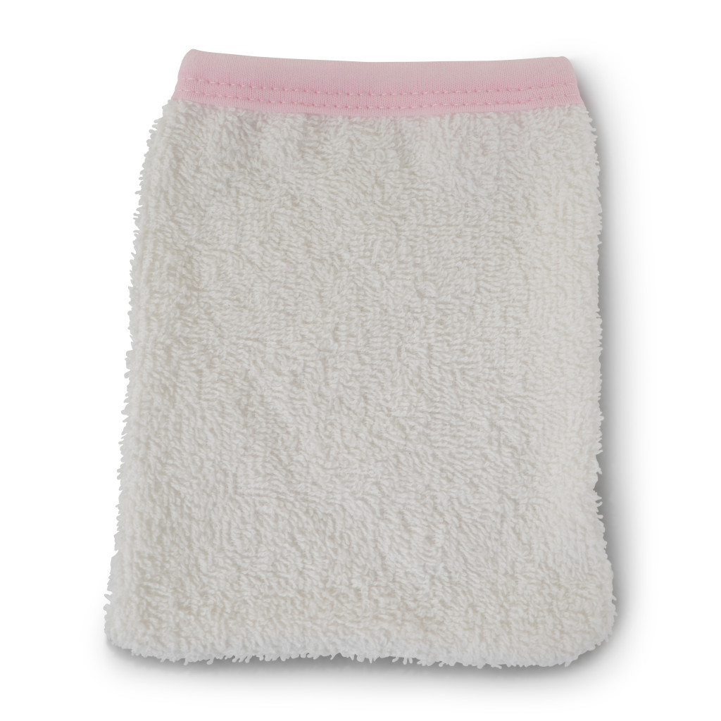 A törölközőhöz jár egy minta nélküli mosdatókesztyű.
