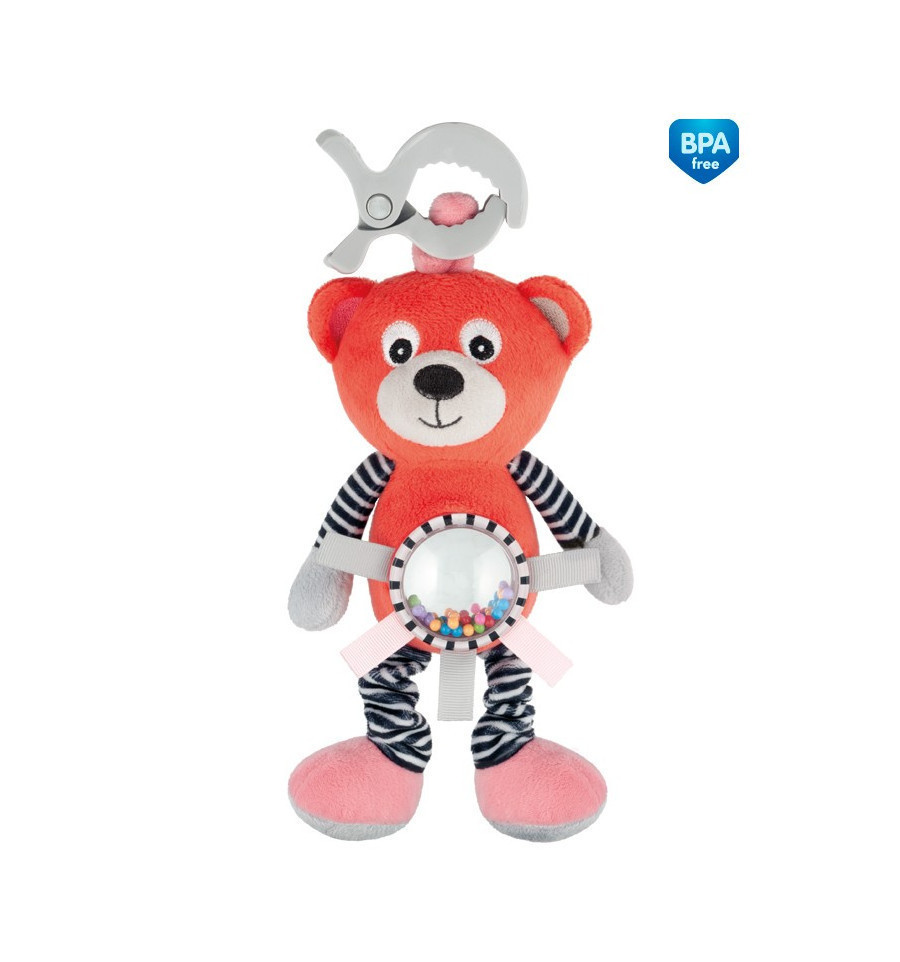 Canpol Babies Csiptetős rezgő plüss játék csörgővel - Maci - Korall
