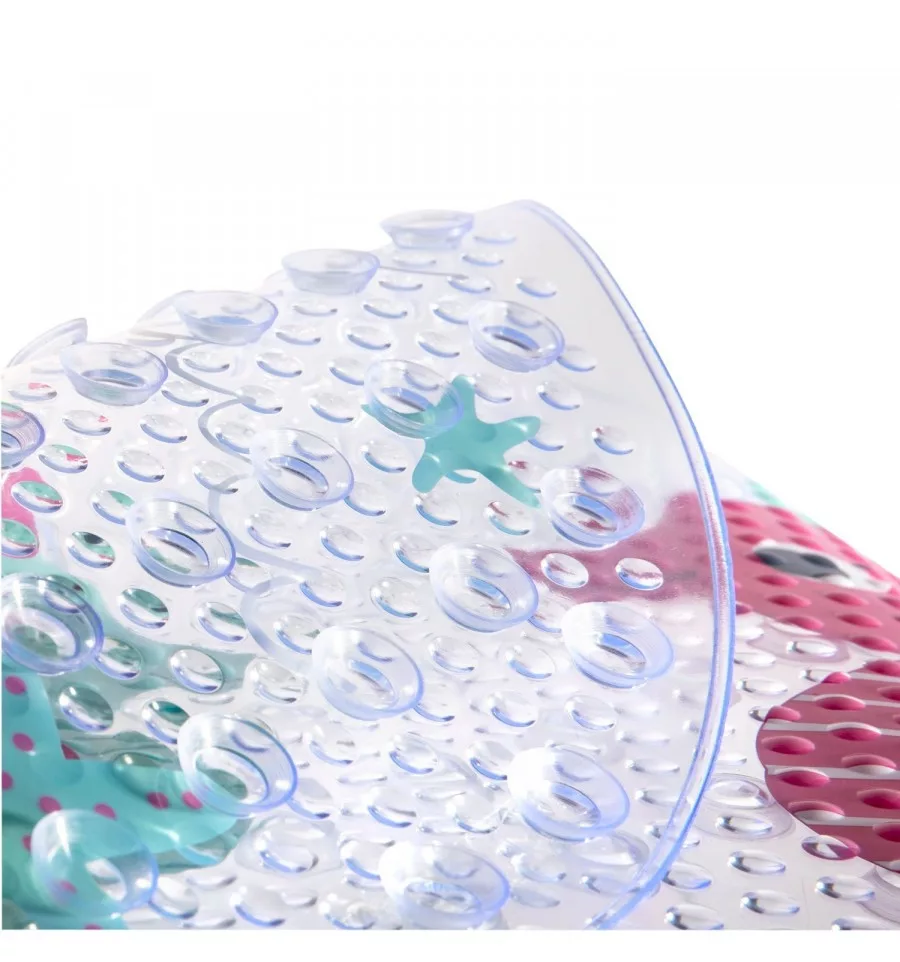 Praktikus csúszásgátló alátét tapadókorongokkal, amelyek a kisgyermekek kádban történő fürdetéséhez lettek kifejlesztve. Meggátolja, hogy a kisgyermek megcsússzon fürdetés közben. Magas minőségű gumiból készült. Az attraktív dizájn ösztönzi a gyermeket a fürdéshez. Méretei: 69x38 cm.