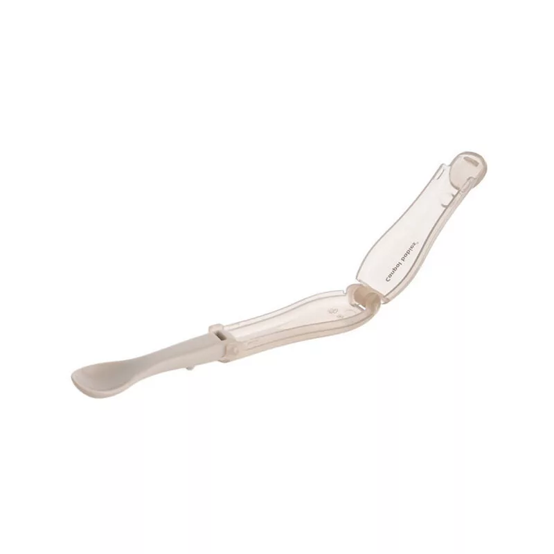Meleg levest, joghurtot vagy gyümölcspépet szeretne adni gyermekének útközben? Az összehajtható kanál a tökéletes megoldás a nem otthon történő etetésre. A kanál egyszerűen nyílik, és bárhol használatra kész. A kanál ideális méretre hajtható, amely könnyedén elfér egy táskában vagy hátizsákban. A kanál nyelébeépített tok megelőzi a baktériumok felhalmozódását, ennek köszönhetően a kanál tiszta marad és használata gyermekek számára is higiénikus és biztonságos marad. Étkezés után tovább hordozható anélkül, hogy nyomot hagyna a táskában vagy hátizsákban. A lekerekített élek nem irritálják a kisbaba érzékeny ínyét, így a kanál tökéletes lehet az önálló evéssel való kísérletezéskor is. A kanál 4 hónapnál idősebb gyermekeknek készült.