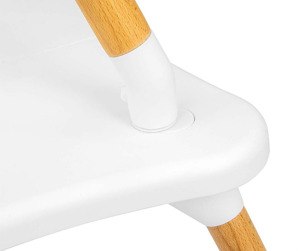 - A talapzat széles lábtávolsága mozgékonyabb gyerekek esetén is biztosítja a magas etetőszék stabilitását