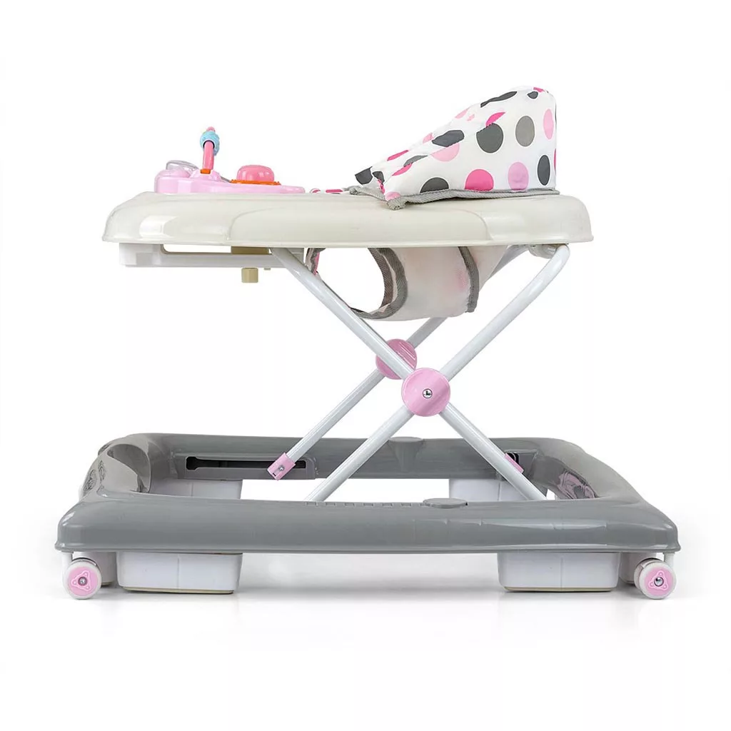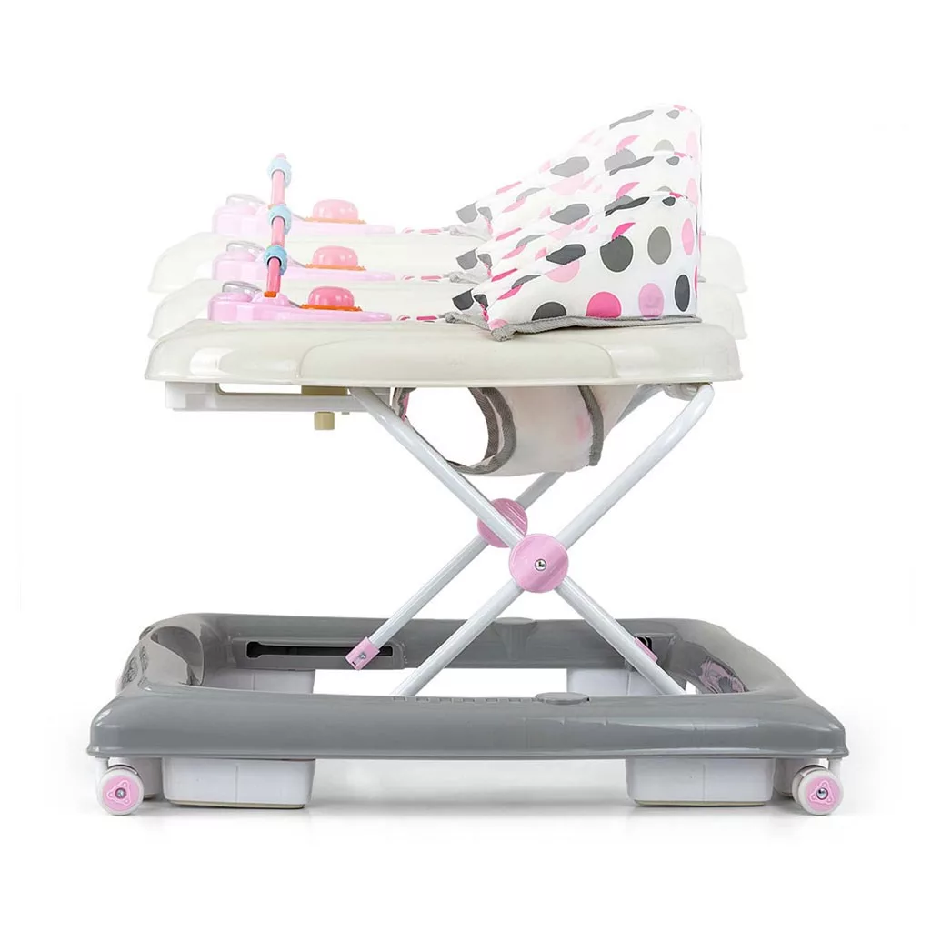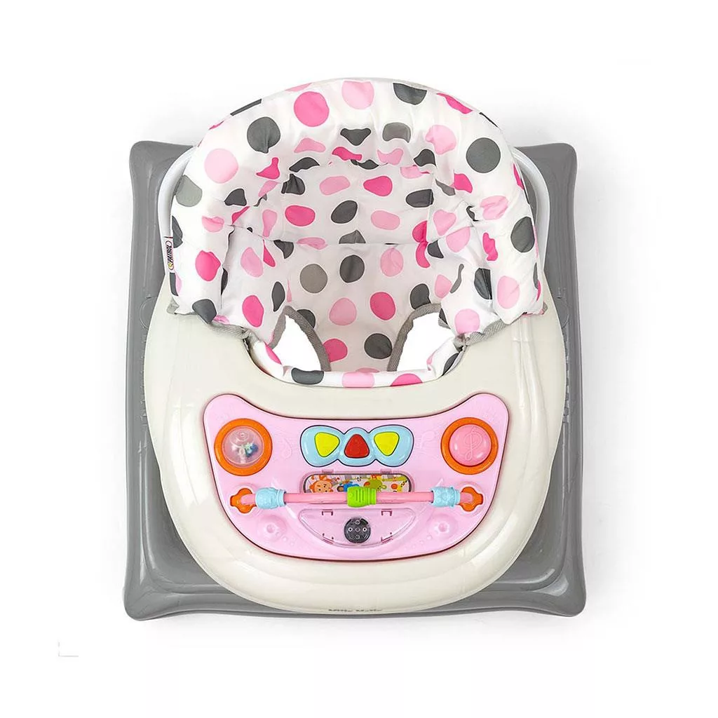 A termékben van egy oktatópanel, amelyen számos meglepetés várja a kis felfedezőket: fények, sípok, dallamok, csörgők, gombok és egyéb mozgó elemek. A tálcáról a panel levétele után a sétálók külön játékként, például útitársként, a tábla pedig játékasztalként szolgál majd.
