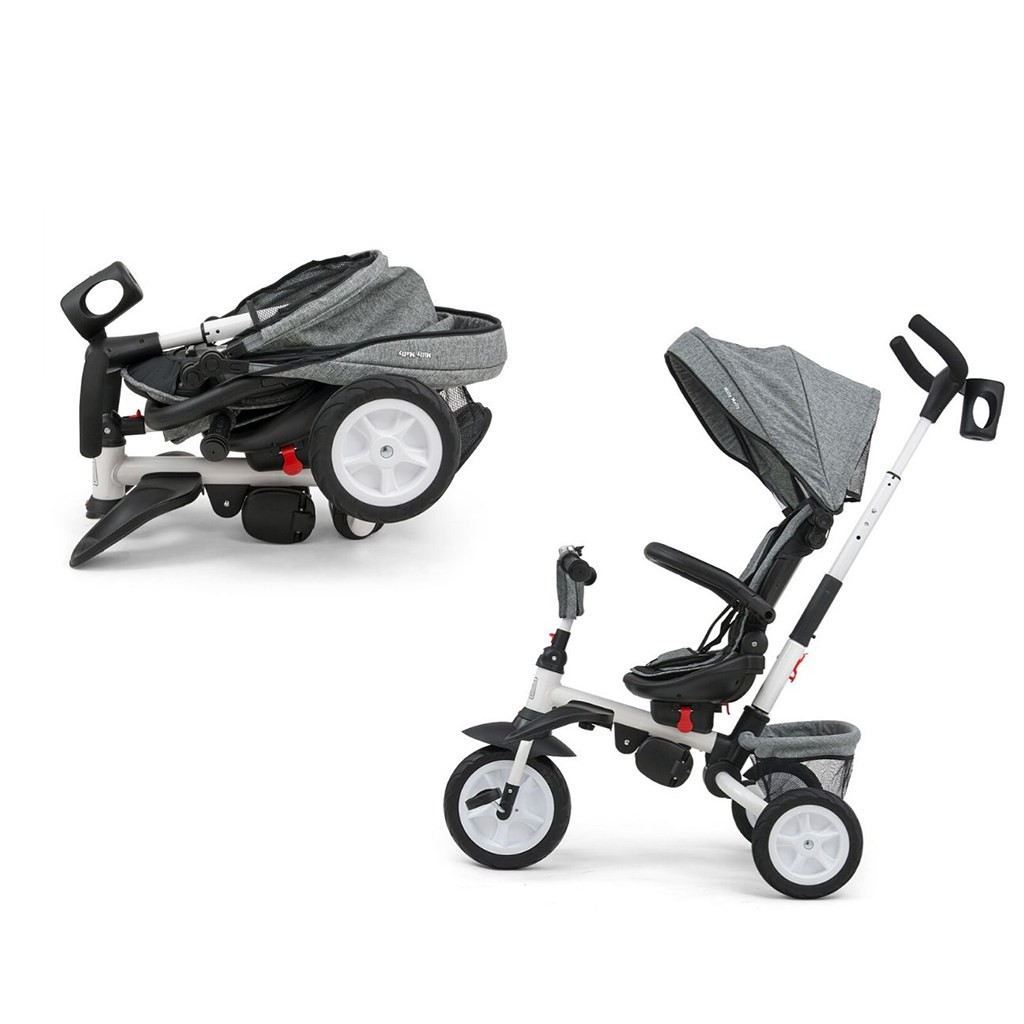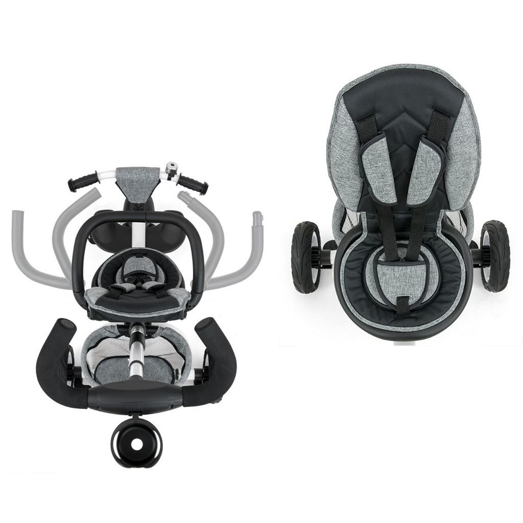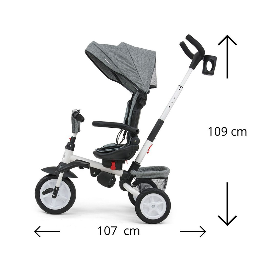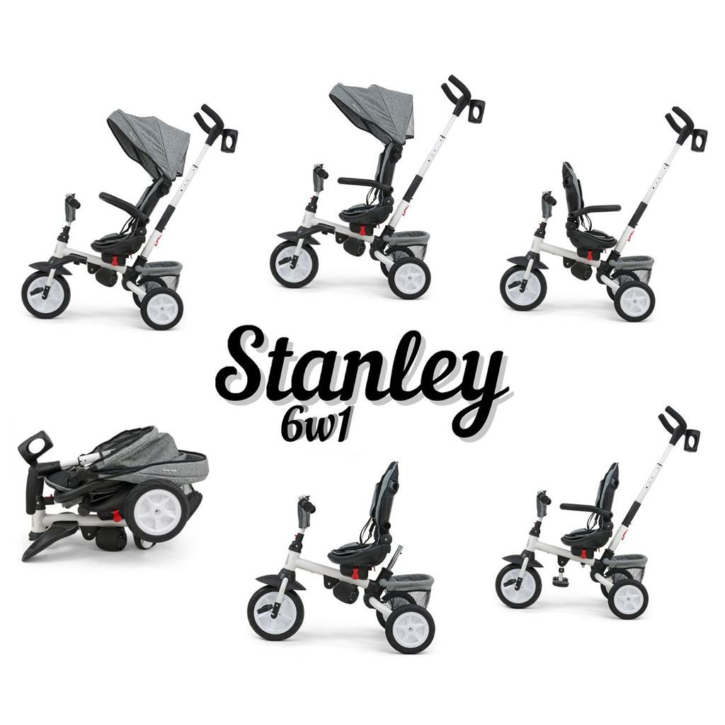 Gyerek pedálos, háromkerekű bicikli 6az1-ben Milly Mally Stanley. A tricikli a GROW UP csoport termékei közé tartozik, tehát gyermekével növekszik. Minőségi és tartós anyagokból készül. Kényelmes és ergonómikusan kialakított üléssel rendelkezik, amely 360 fokkal elforgatható, annak köszönhetően a tricikli menetirányba és ellentétes pozícióba is használható. Kartartóval, biztonsági övekkel, gumi kerekekkel és lábtámasszal felszerelt. A vezetőrúd és a tető eltávolítása után tricikliként használható.