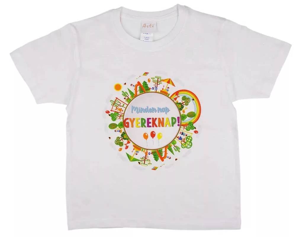 Ha nálatok is mindennap gyereknap, akkor ez a póló tökéletes választás! Az uniszex fehér póló vidám Gyereknapos felirattal díszítve garantáltan mosolyt csal a kicsik arcára. A pólót minőségi pamutból készítettük, hogy biztosítsuk a gyerkőcök kényelmét és a hosszútávú tartósságot. Egész évben hordható, hiszen könnyen kezelhető, szín- és formatartó anyagból készült, így a játék közben sem veszít formájából. Büszkék vagyunk rá, hogy ez a termék 100% magyar munka eredménye, így a vásárlással a hazai gyártást is támogatod. Minősége első osztályú, mert a legkisebbeknek csak a legjobbat szánjuk!