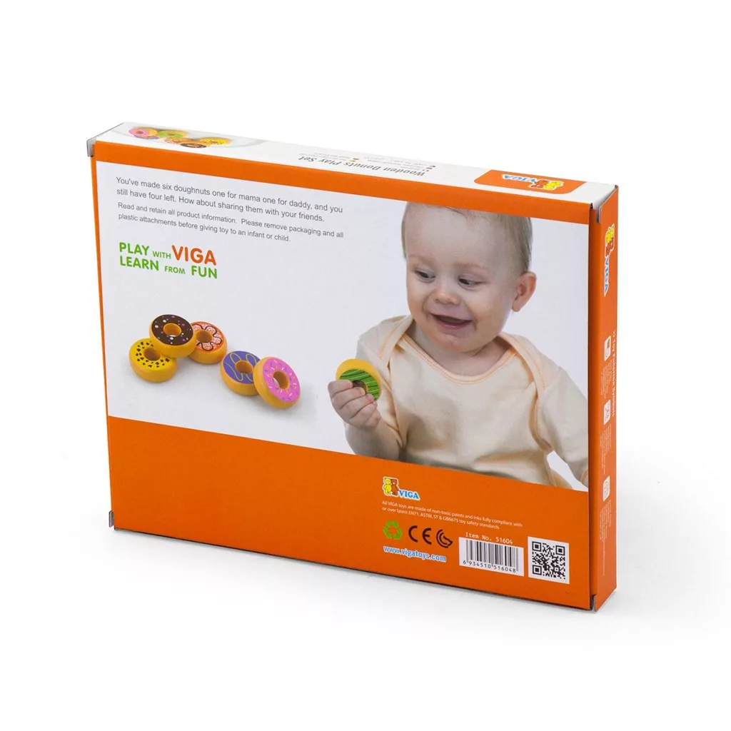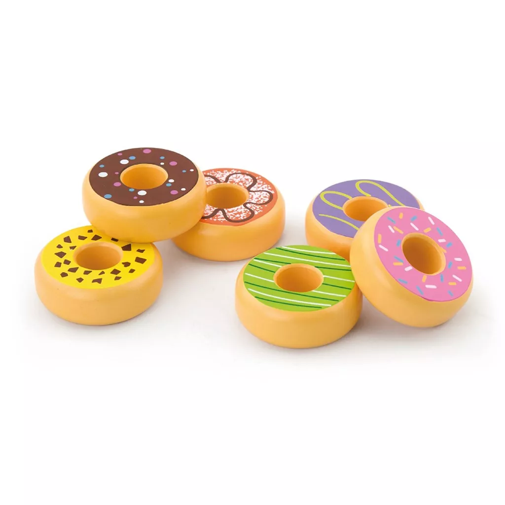 Gyermek fajáték Viga 6 darabos fa fánk készlet