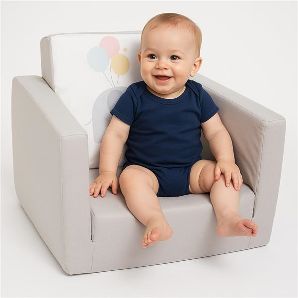Gyermek kihajtható fotel New Baby nagyszerű és nagyon népszerű kiegészítője a gyerekszobának. A legkisebb gyerekeknek szánt többfunkciós szék puha és könnyű habból készült, levehető, mosható pamut huzattal rendelkezik. A cipzárnak köszönhetően a huzat könnyen eltávolítható. A huzat nagyon kellemes színekkel rendelkezik, és elefánt képe díszíti. Biztosítja a gyermek kényelmét, és ízlésesen kiegészíti a gyerekszobát. A fotel pihenésre, mesenézésre vagy szórakozásra is használható. Eredeti kollekciónk a Carero cég képzett tervezőitől származik New Baby márkanév alatt. Minőségi anyagokra nyomtatunk mintákat. Időtlen, elegáns és stílusos dizájnokat tervezünk gyermekek számára. Az anyagok OEKO-TEX STANDARD 100 tanúsítvánnyal rendelkeznek. Méretek: 37x45x42. Összetétel: huzat 100% pamut, belső anyag: poliuretán hab.