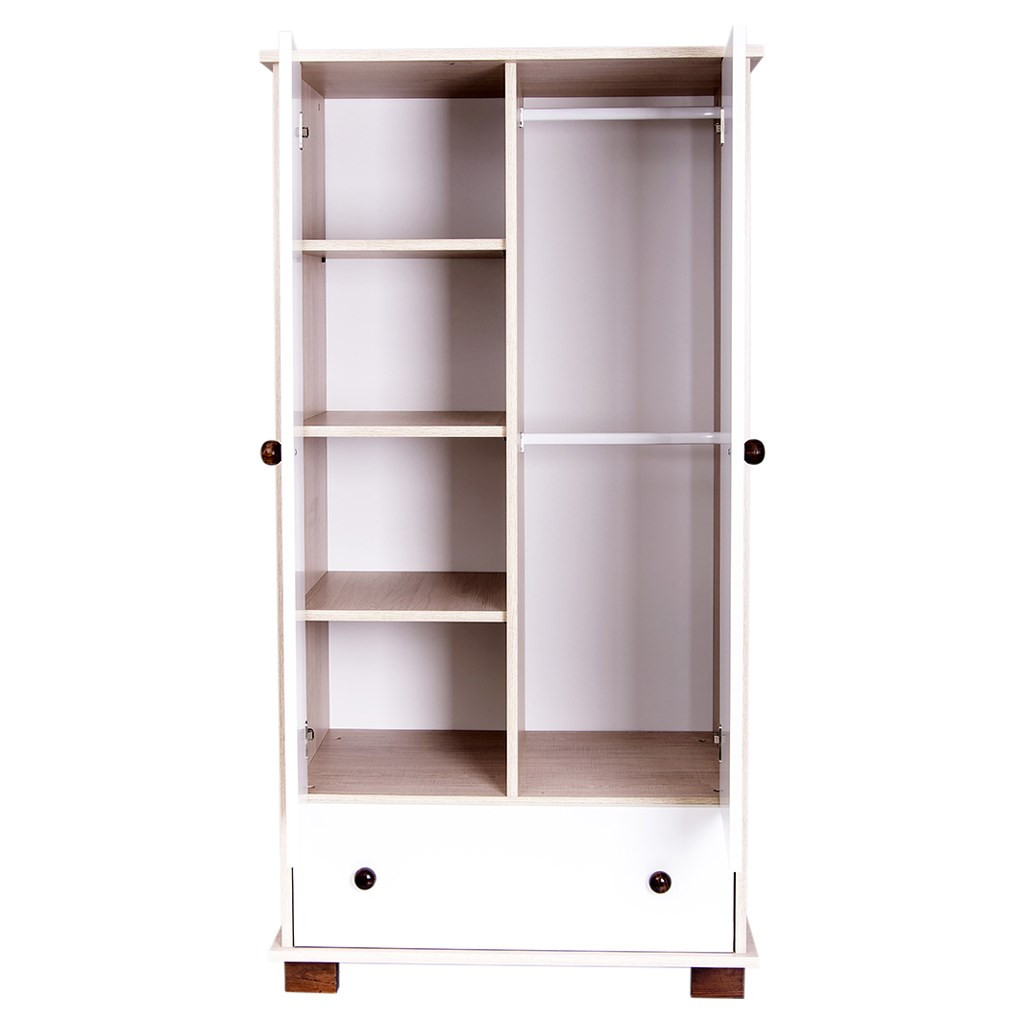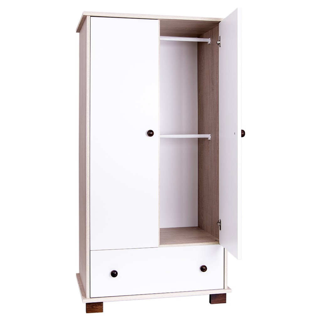 Fa gyermek ruhásszekrény Drewex. Csodálatos képekkel díszitve. Minőségi fenyőből kézsült. Az alsó részén fiókkal rendelkezik. Mérete kb 160x83x48 cm.