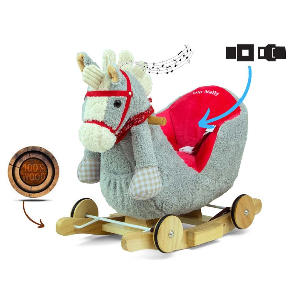 Hintaló dallammal és kerekekkel Milly Mally Polly szürke-piros