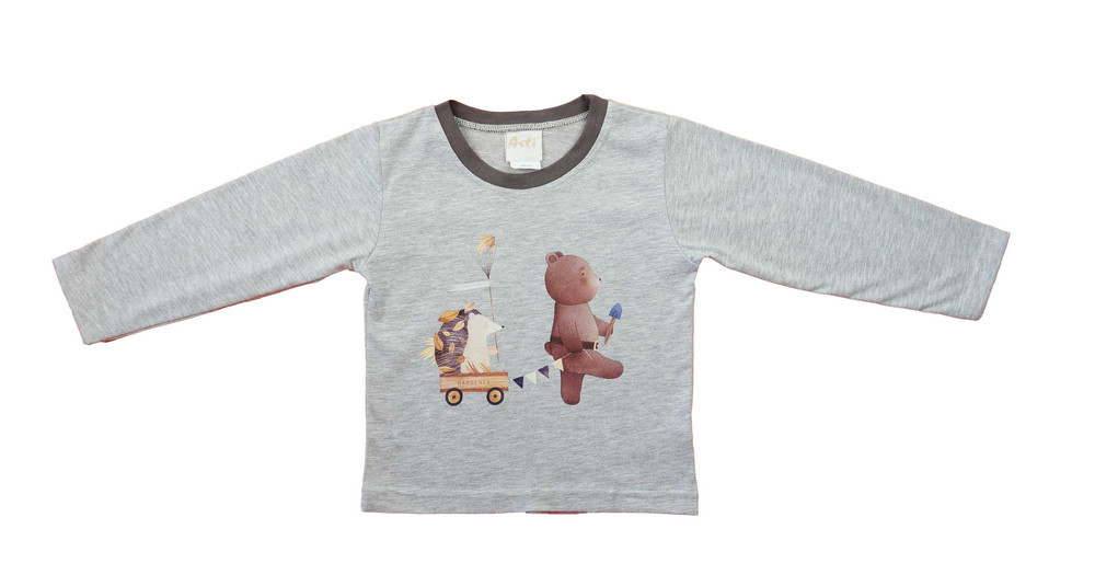 Hosszú ujjú fiú póló – mackós mintával Egy igazán szerethető darab, ami minden kisfiú ruhatárát feldobja! A vidám mackós minta nemcsak játékra hívja a gyerekeket, hanem mosolyt is csal minden anyuka arcára. A puha, 100% pamut alapanyag gyengéden simul a bőrhöz, jól szellőzik és kényelmet nyújt egész nap, akár bölcsibe, oviba vagy otthoni játékhoz. A passzés nyakmegoldásnak köszönhetően könnyen feladható, a minőségi magyar gyártás pedig biztosítja a tartósságot és a szín- és formatartást. Meleg szívvel ajánlott I. osztályú magyar termék 100% pamut – puha, bababarát és strapabíró Vidám, mackós mintával, amely kalandra csábít Ez a póló nemcsak ruhadarab, hanem szeretetteljes kísérő minden közös kalandhoz – hogy kisfiad mindig kényelmesen és mosolyogva fedezhesse fel a világot! ????