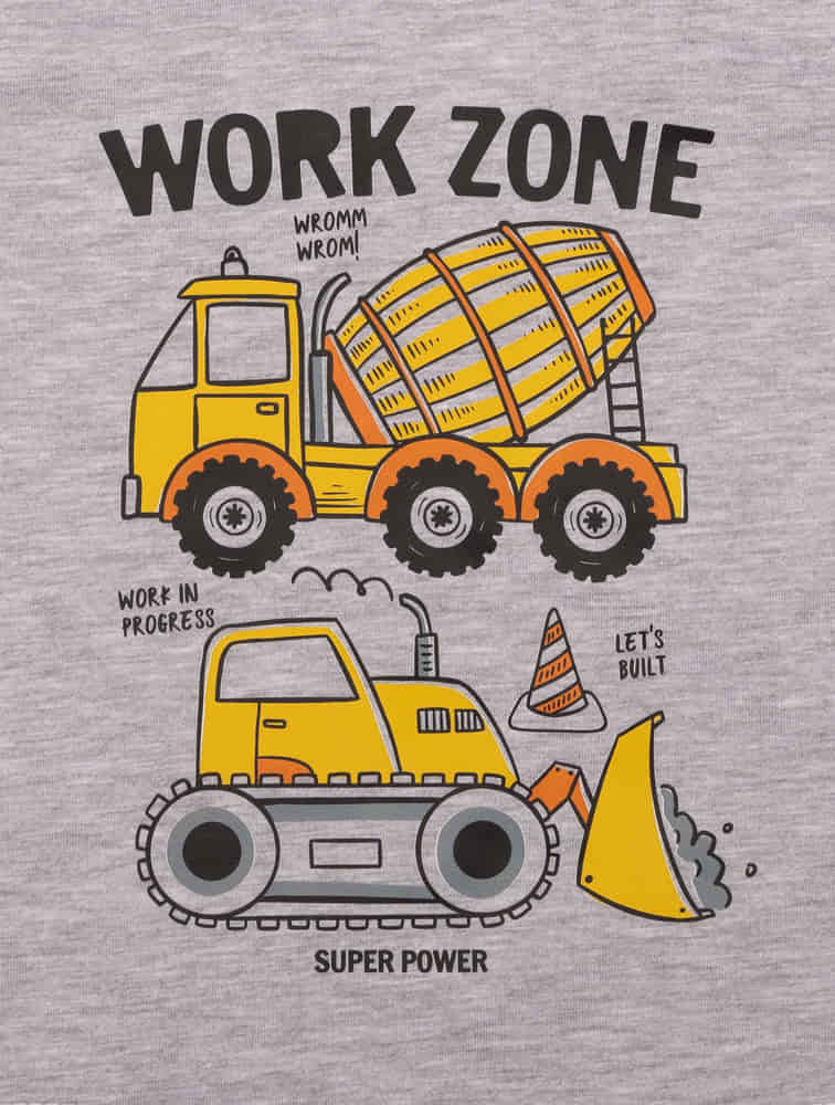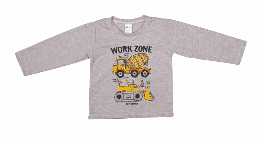 Hosszú ujjú fiú póló Munkagépes mintával Egy igazán csibészes megjelenést kölcsönözhet kisfiadnak ez a hosszú ujjú fiú póló, amelyen munkagép minta díszeleg. A szürke színű alapdarab kiválóan alkalmas óvodai napokra vagy játszótéri kalandokra. Kényelmes és praktikus viselet, ami egy farmernadrággal párosítva igazán ütős összhatást kelt. Készült minőségi, könnyen kezelhető, jól mosható, szín- és formatartó pamut anyagból, így garantáltan hosszú távú társ lesz a mindennapokban. Mint minden termékünk, ez is magyar minőségi termék, melynek anyaga 100% pamut, I. osztályú minőségben.