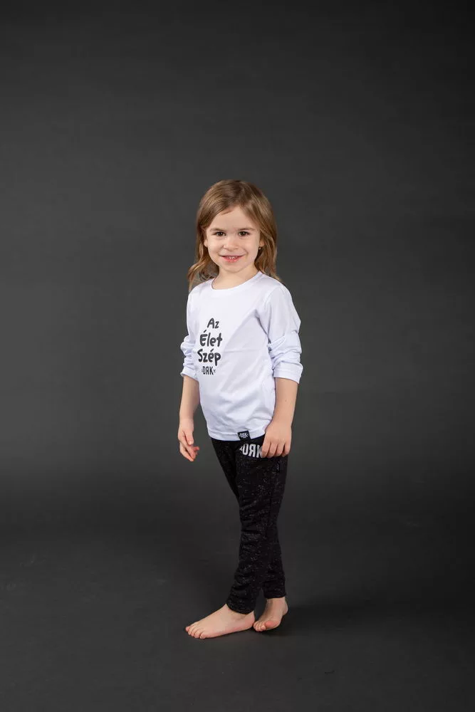 Az Ön gyermekének garantáltan tetszeni fog ez a hosszú ujjú póló, amelyen " Az Élet Szép"minta díszeleg. A póló nem csak kényelmes viselet a mindennapokban, de a Drk mintának köszönhetően a játékra is inspirál. A minőségi magyar termék garantáltan ellenáll az aktív gyermekjátéknak, és hosszú időn keresztül megőrzi szépségét és kényelmét. A póló a magyar termék, így biztos lehet benne, hogy gyermekének bőrével érintkező anyag kiváló minőségű és bőrbarát.