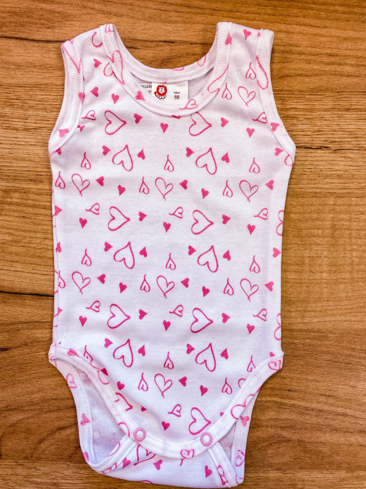 LP Ujjatlan filmnyomott pamut body (86) - Rózsaszín szívecskék