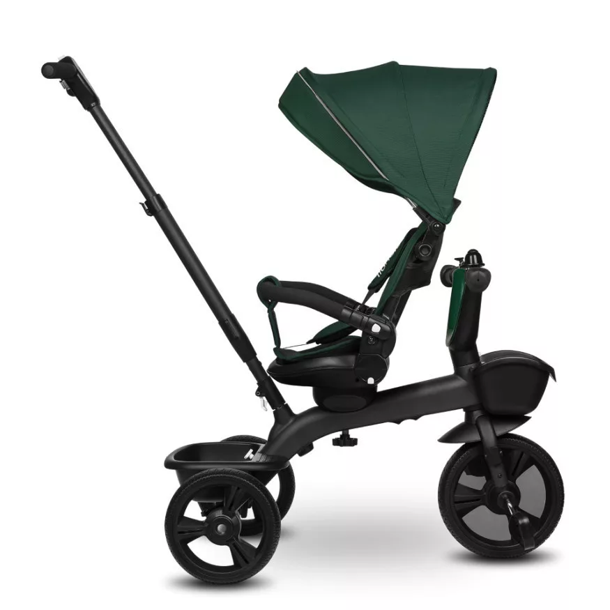 3 nagy átmérőjű, 10 "és 8" méretű, speciálisan kialakított futófelülettel ellátott kerék megkönnyíti a kerékpározás göröngyös utakon . A kerekek teljes egészében kiváló minőségű, nagyon könnyű PU anyagból készülnek - ennek köszönhetően nem lyukaszthatók be és nem igényelnek pumpálást. Az első keréken van egy fedél is, amely védi a baba lábát és sárvédőként működik.