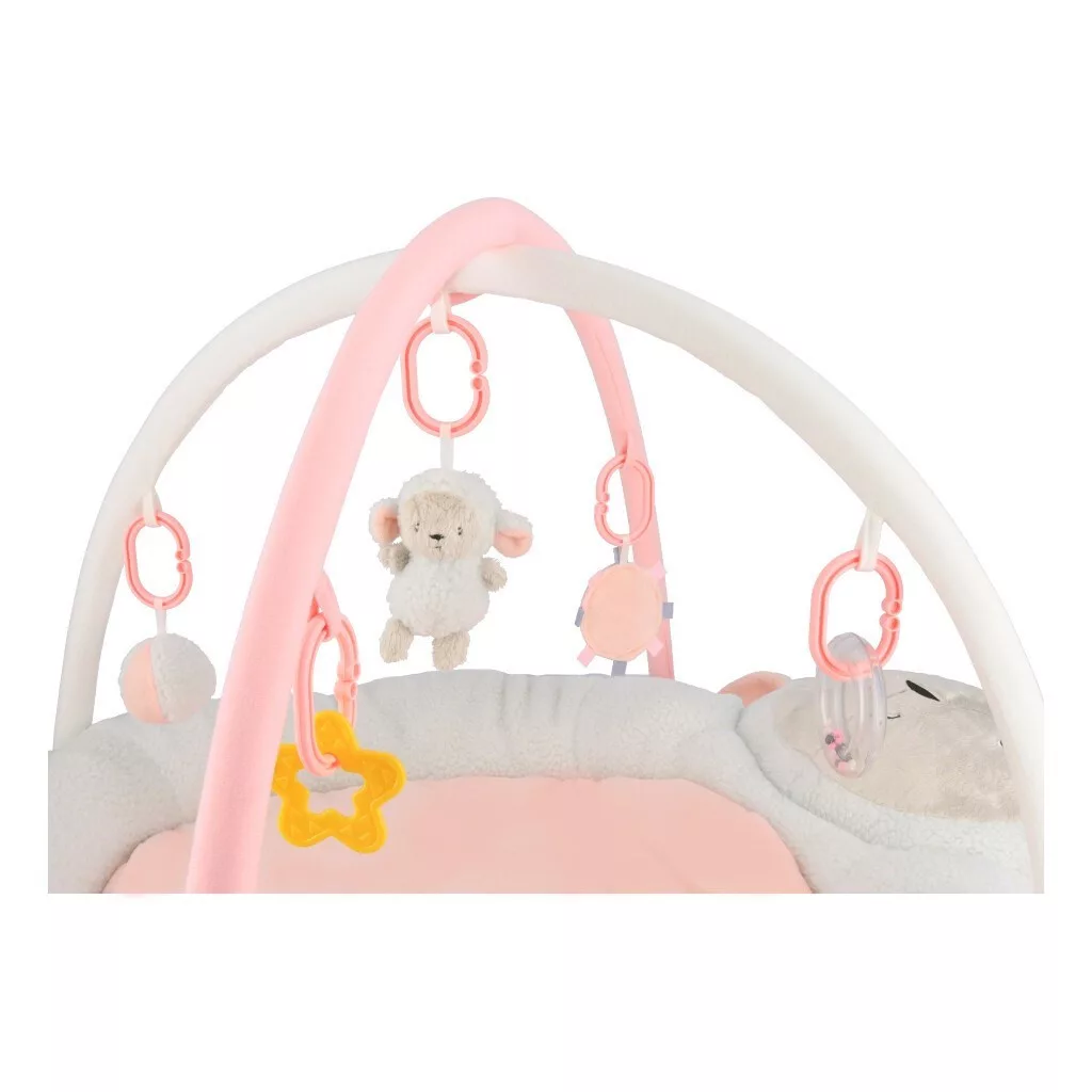 Plüss játszószőnyeg New Baby. A színek, formák és hangok felismerésének köszönhetően fejleszti a gyerekek fantáziáját. Fejleszti a tapintást, a látást és a hallást a susogó és mozgó alkatrészeknek köszönhetően. Kényelmes hason vagy háton fekve, mozgásszabadságot biztosít a babának és motiválja a fejemelésre. A játékok könnyen eltávolíthatók és külön használhatók. Minden baba megtalálja kedvenc játékát. Tükröt, susogó részeket, sípolós plüssjátékokat és rágókákat tartalmaz. Beltéren és kültéren is használható. Kényelmes párnaként vagy alátétként is használható. A kellemes és puha anyagnak köszönhetően gyermeke úgy érzi, mintha egy felhőn feküdne. A New Baby számára a vevői elégedettsége és a baba kényelme nagyon fontos.