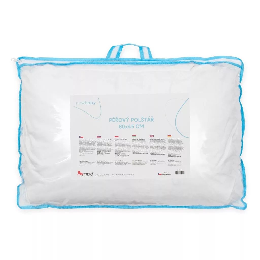 New Baby Pehelypárna Gyerekeknek 60x45 cm. A New Baby gyerekeknek szánt pehelypárnája a kiságyban a pihentető alvás szinonimája. A pehely 100%-ban természetes anyag, amely tökéletes hőszigetelő tulajdonságokkal rendelkezik. Elnyeli a nedvességet és alvás közben elvezeti a testtől. Praktikus cipzáras táskában küldjük, amiben akár otthonodban is tárolhatsz bármilyen holmit.