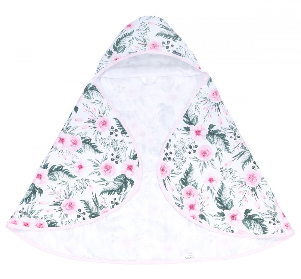MTT Kapucnis fürdőlepedő - Fehér alapon rózsaszín virágok