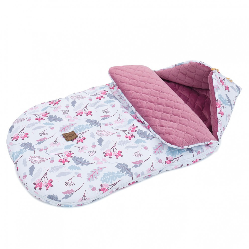 MTT Őszi bundazsák (0-12 hónapos) - Fehér alapon rózsaszín tölgyfa levelek