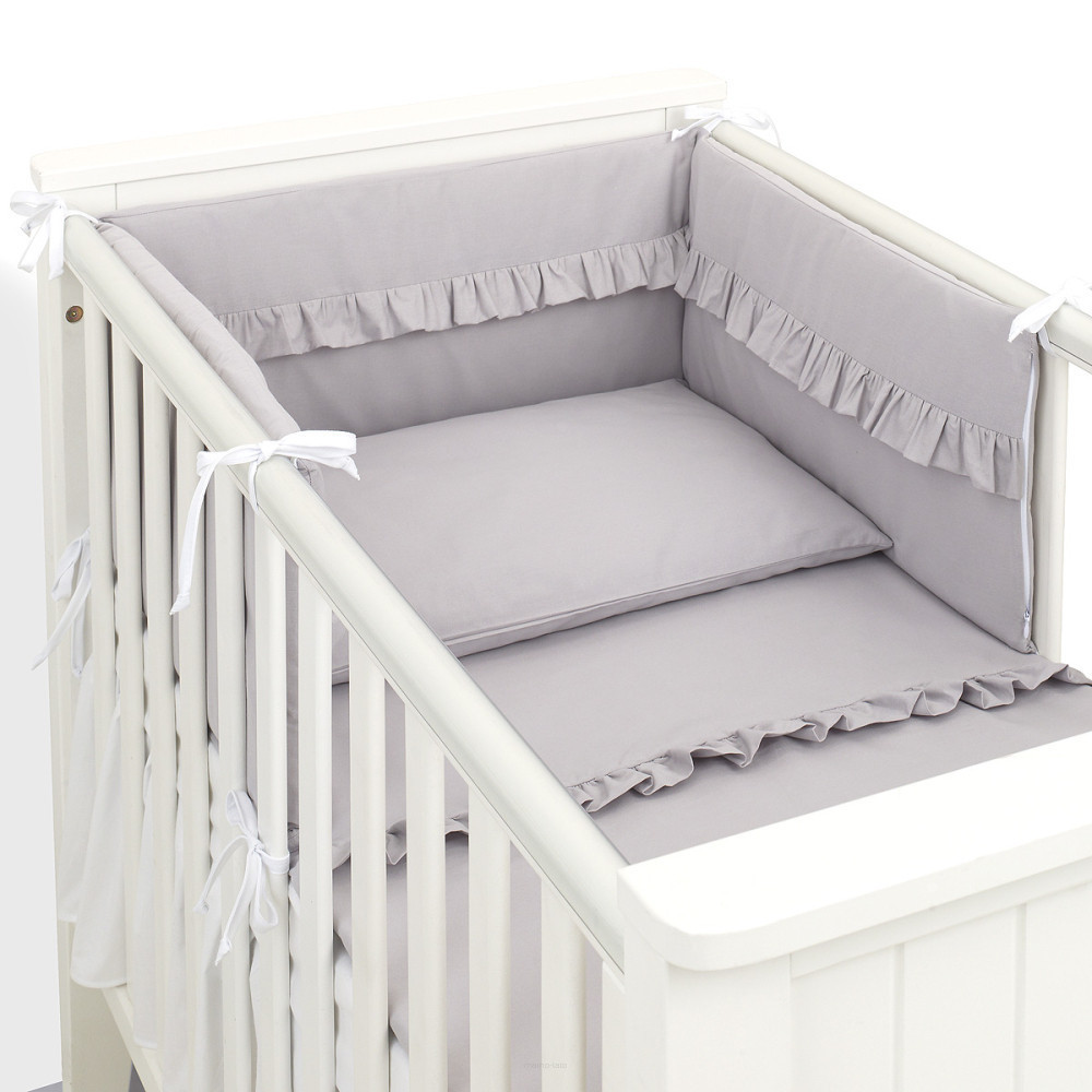 • A rácsvédő 8 db hosszú, szépen varrott pánttal rendelkezik, melynek köszönhetően fixálható a kiságy rácsaihoz.