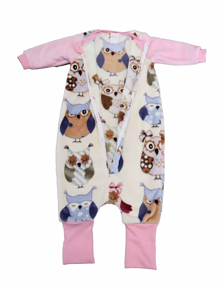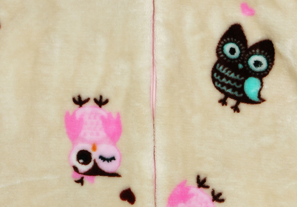 Mintás, elöl cipzáras, hosszú ujjú wellsoft tipegő hálózsák.