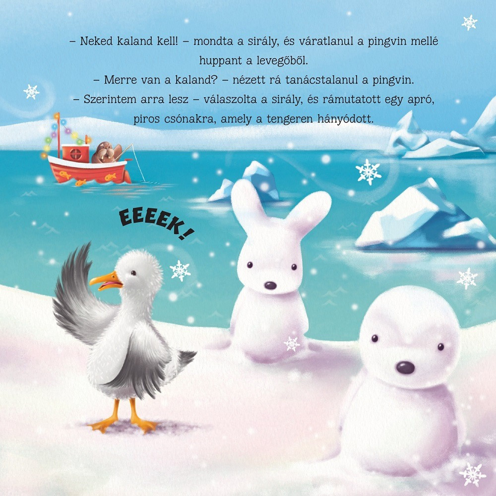 A kicsi pingvin megunta, hogy egész nap csak a lábát lógatja a jeges vízbe. Elindul hát kalandot keresni... Igen ám, de vajon merre van a kaland? És tényleg a kaland az, amire a világon a legjobban vágyik? Tarts te is a kicsi pingvinnel a kaland keresése közben, és meglátod, mennyi izgalmas élmény vár!
