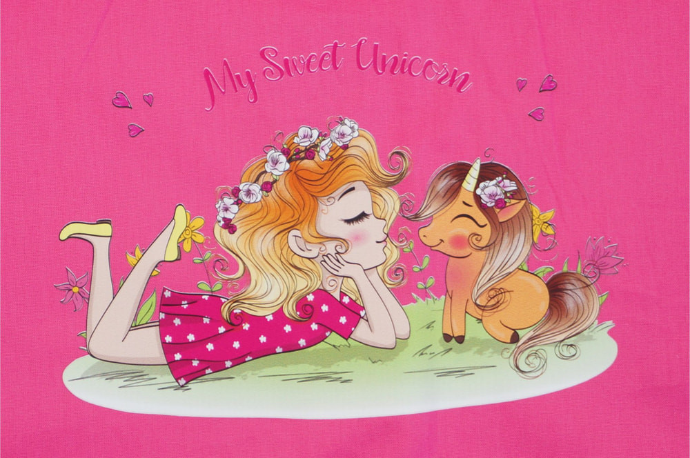 Oviszsák elöl cipzáras, zsebes Kislány unikornissal mintával