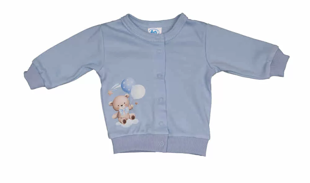 Pamut baba kocsikabát Macis mintával Cuki és trendi elöl patentos kisfiú pamut kocsikabát. Jól kihasználható, praktikus alapdarabja lehet gyerekünk ruhatárának. Elején cuki macis figurával nyomva. Anyaga vékonyabb pamut, mely tökéletes viselet tavaszi-őszi napokra, de hűvösebb nyári estékre is jól jöhet. Könnyen kezelhető, szín- és formatartó minőségi pamut anyagból készült. Minőségi magyar termék Anyaga: 100% pamut Minőség: I. osztály A termék nikkelmentes patenttal készül. A patent nem tartalmaz nikkelt, ezért nem vált ki allergiás reakciót az erre érzékeny babáknál.