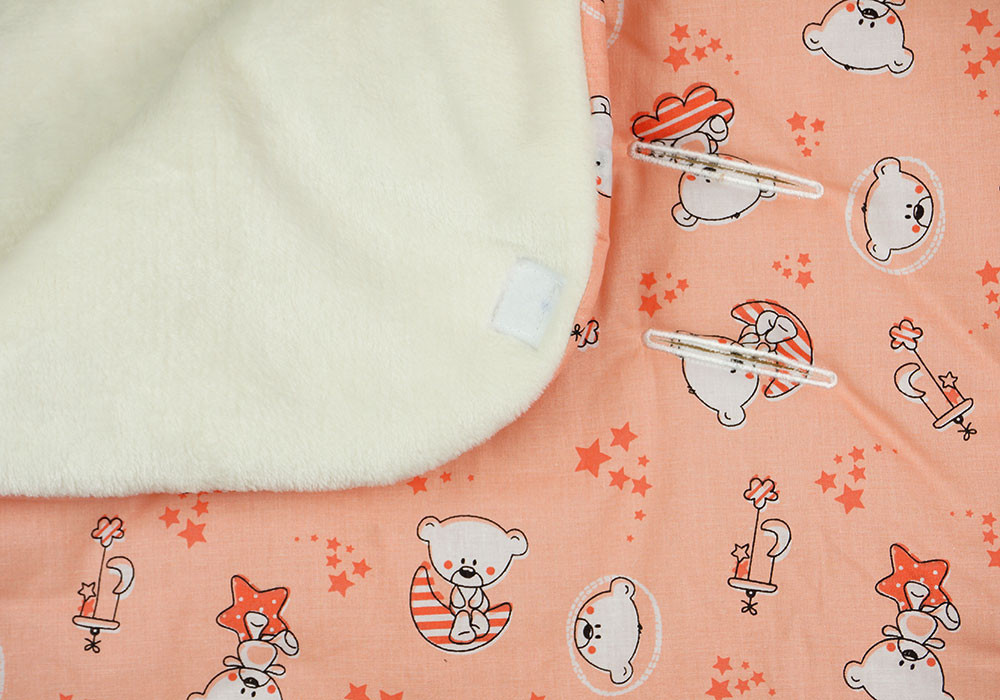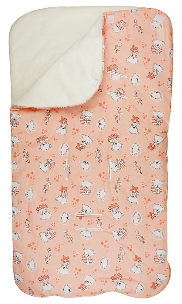 Mintás, oldalt cipzáros, belül wellsoft béléses babakocsi bundazsák, mely úgy lett kialakítva, hogy az ötpontos biztonsági övet is át lehet rajta fűzni.