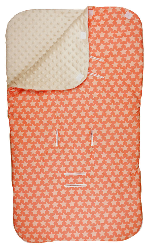 Mintás, oldalt cipzáros, belül wellsoft béléses babakocsi bundazsák, mely úgy lett kialakítva, hogy az ötpontos biztonsági övet is át lehet rajta fűzni.