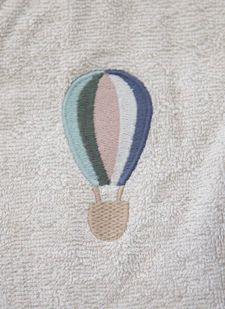 Ölelje körbe kisbabáját a Petu Petu homoksínű, hőlégballonos mintájú, kapucnis poncsóval! Készüljön fel a fürdőzés utáni ölelésekre vagy a strandolás pillanataira ezzel a szuper puha, 100% pamutból készült poncsóval. Az OEKO-TEX minősítés biztosítja, hogy termékünk biztonságos és környezetbarát a legérzékenyebb bőr számára is. A 50 x 50 cm-es méret pedig tökéletesen illeszkedik a kis testekhez, melegen tartva őket minden körülmények között. Fedezze fel a Petu Petu kényelmét és minőségét ezzel a bájos poncsóval!