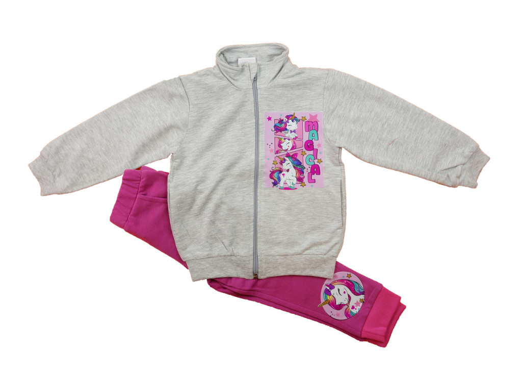 2 részes pamut kislány szabadidő szett – ahol a kényelem és a bájos stílus találkozik! Ez az aranyos unikornis mintával díszített, 2 részes szabadidő szett garantáltan elnyeri a kislányok tetszését. A szett igazán lányos színvilágú, 100% pamut anyagból készült, így puha tapintású, bőrbarát és egész napos kényelmet biztosít viselése során. A szabadidő felső praktikus oldalzsebekkel rendelkezik, amelyek nemcsak divatosak, hanem a kisebb kincsek tárolására is ideálisak. A hozzá tartozó gumis derekú nadrág szintén oldalzsebes kialakítású, így a kislányok kedvenc apróságai mindig kéznél lehetnek. A szett Magyarországon készült, kiemelkedő, I. osztályú minőségben, amely garantálja a tartósságot és a hosszú élettartamot. A pamut alapanyag könnyen kezelhető, jól mosható, és gyakori használat mellett is megőrzi formáját és színét. Tökéletes választás hétköznapi viseletre, óvodába, iskolába vagy hétvégi kikapcsolódáshoz – amikor a kényelem és a cuki megjelenés egyaránt fontos. Minőségi magyar termék Anyaga: 100% pamut Minőség: I. osztály