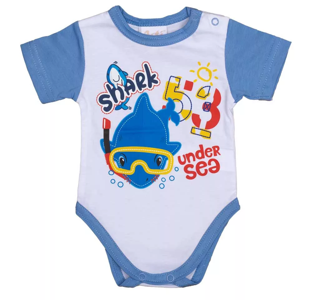 Rövid ujjú baba body Cápás mintával